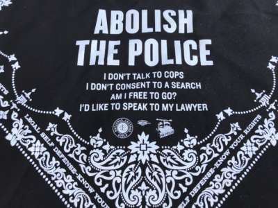 Union-made black T shirt with Eric Drooker’s apartheid wall graphic on the front, and the PM logo on the back.