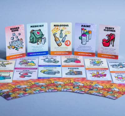 In Bloc by Bloc: Uprising, each player controls a faction of revolutionaries—Workers, Students, Neighbors, or Prisoners—fighting against the police in the streets of a city that changes with each game. Build barricades, clash with police, occupy districts, loot shopping centers, build mutual aid networks, and liberate the city before time runs out and the military arrives!