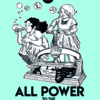 A 7.5 x 10.5cm sticker, featuring a an illustration by N.O. Bonzo of two children pressing a police car and blowing bubbles, and below them is the message: “All Power to the Imagination“.