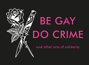 A sticker created to mark the publication of the Working Class History title, Be Gay, Do Crime – and the associated t-shirt.