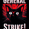 A 7.5 x 10.5cm sticker featuring an illustration by Eric Drooker, a a powerful graphic in red and white that depicts the wildcat of IWW fame, and the proclamation of a General Strike!