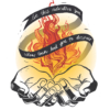 A 7.5×10.5cm sticker featuring original artwork by Amanda Priebe, depicting cupped hands sheltering a flame, with banner text reading: “Let this radicalize you, rather than lead you to despair”, a quote by Mariame Kaba.