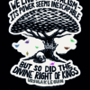 A 7.5×10.5cm sticker designed by Roger Peet featuring a tree growing through a crown, and a skull beside the base of the tree. A quote by Ursula K. Le Guin surrounds the image.