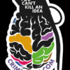 A 7.5×10.5cm sticker of CrimethInc’s idea grenade, colourised.