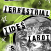 The astrology suggests that we’re collectively standing on the precipice of a major shift here on Earth. So, how do we use this astrological energy of change to our advantage? The 78 tarot archetypes invite us to self-reflect and entertain curiosity around designing our future within our larger communities. During these times of intense transformation, tarot can act as both a mirror and an anchor for personal empowerment, reminding us that we write our tomorrow. This DIY quality is reflected in the Turning Terrestrial Tides Tarot artwork. The travel-friendly, poker-sized deck was created in the approachable cut-and-paste collage style of 90s zines and includes the astrological linkages to each tarot archetype as well as words to reflect on, both on the cards and within the included mini guidebook.